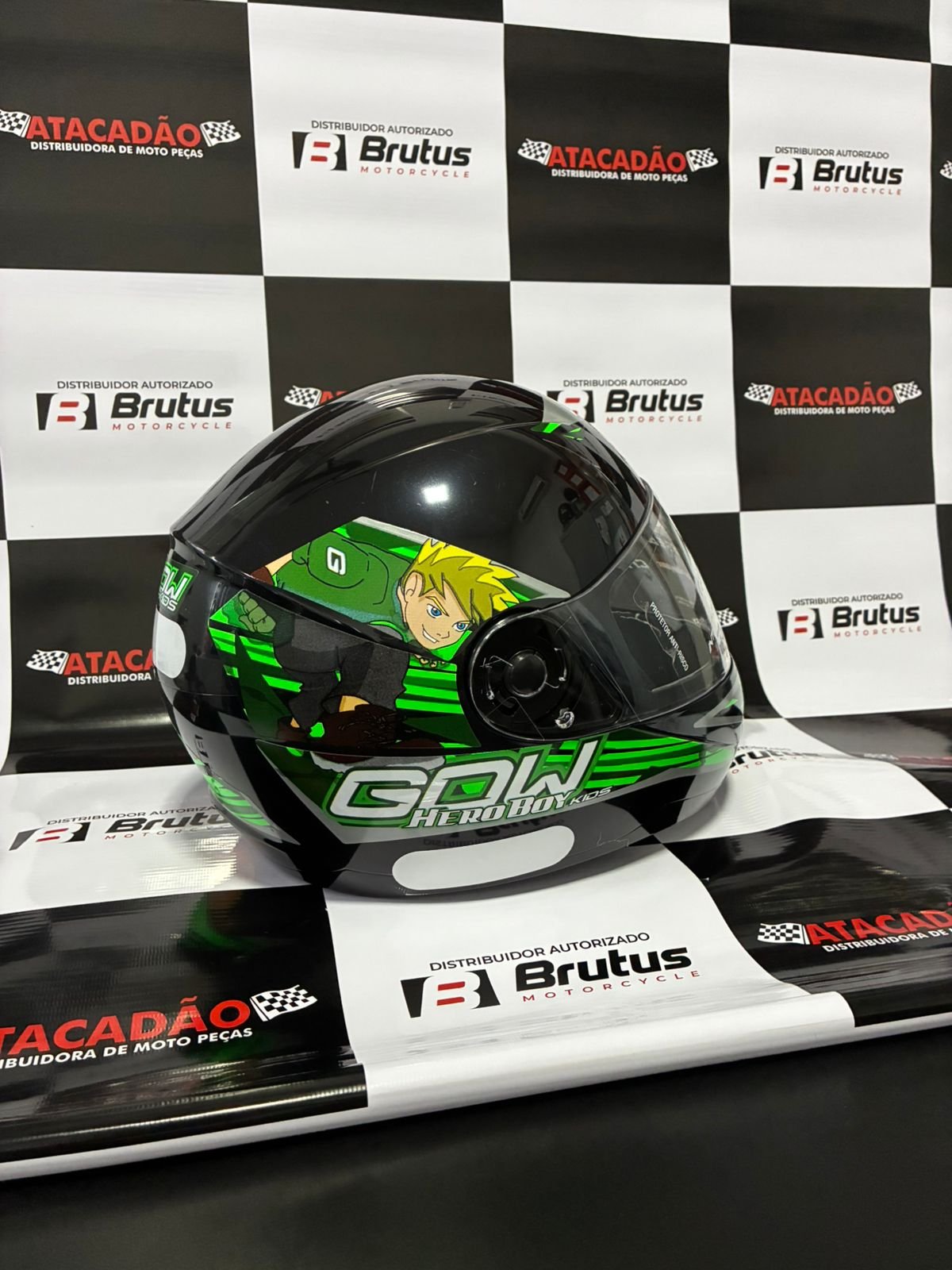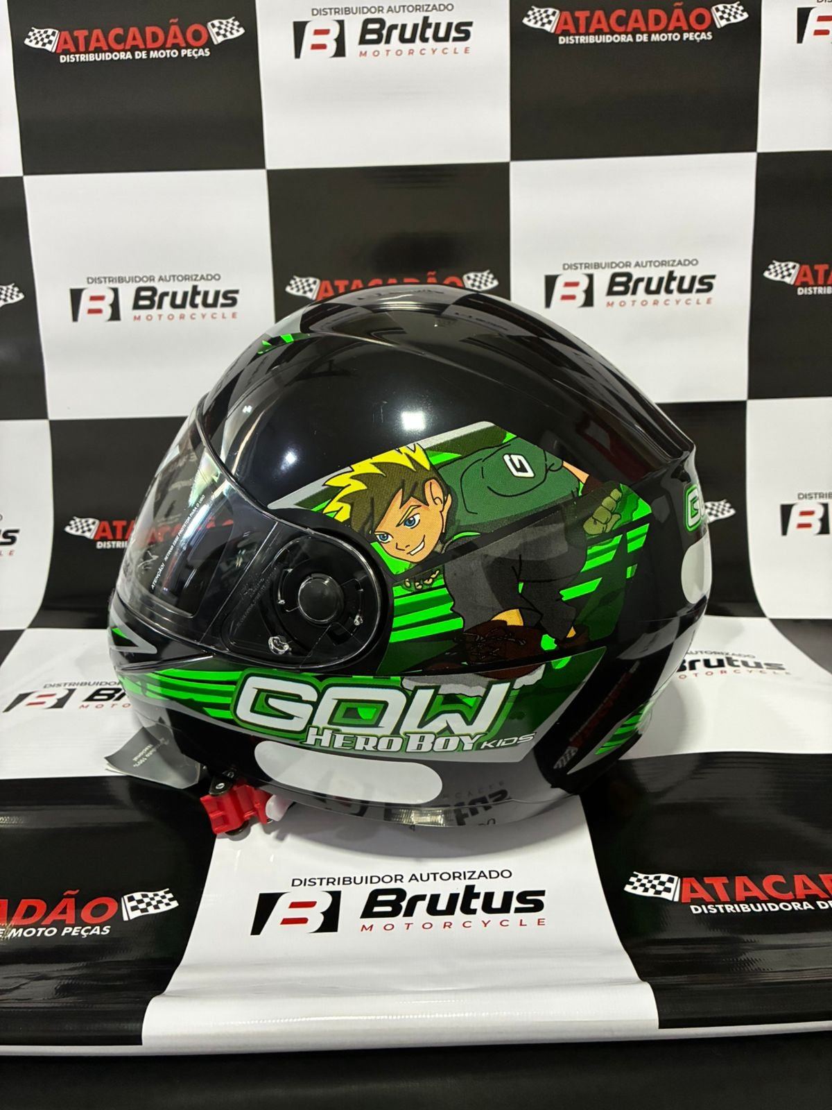 Seja o primeiro a avaliar “Capacete Para Motos Infantil / Criança Gow N° 54 Preto Desenho Hero Preto/Verde”